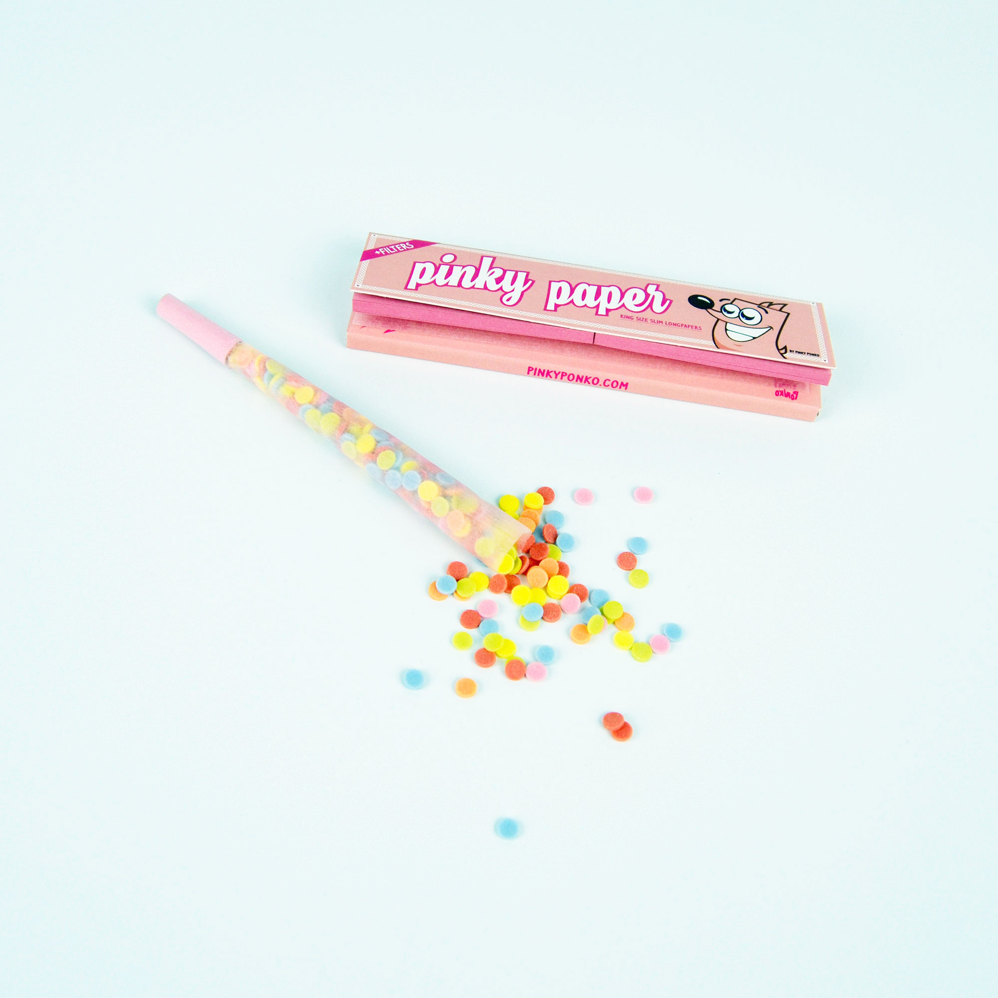 Pinky Paper + Filter, King Size Papers in pink mit rosa Tips, 32 Blättchen pro Packung. Natürliche Gummierung, vegetarisch und organisch. Die ungebleichten Fasern sorgen für die natürliche Färbung.